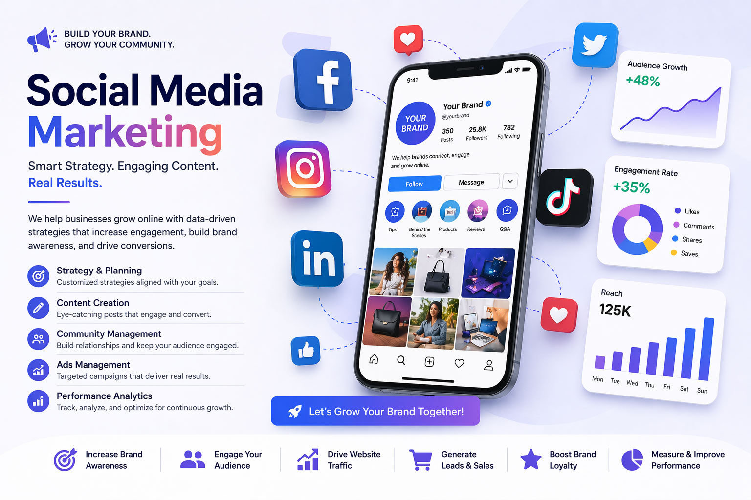 Grow your brand online with social media marketing services designed to expand reach, increase engagement, and support long-term visibility. Discover how strategic social media content can drive traffic, connect with your audience, and support your overall SEO efforts.